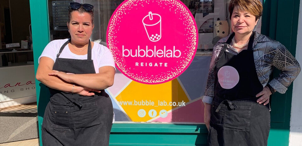 Reigate’s first bubble tea venture, Bubble Lab, has recently opened inside Diana’s Sewing Shop on Church Street. The new business has generated huge interest across social media with loyal customers forming long queues outside, keen to try out new flavours and get their fix of this rapidly growing beverage trend. Rhi meets the entrepreneurs behind the new opening, Lila Tarsitano and Diana Cavagnero to find out more about the history of bubble tea, how the idea to open the venture came about and the difficult challenges faced since opening: