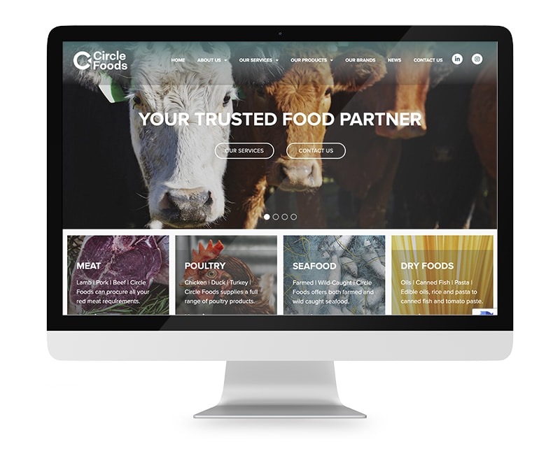 Bob Lillecrapp and Julien Pourik, Directors at Circle Foods (formerly known as Intermeats) came to us back in December 2019. Their company originates from France as one of the country’s largest producers of pork and was established as Intermeats in the UK in 2011, now sourcing and supplying food worldwide. As the business evolved, their product offering expanded beyond just meat and the Directors felt a new name was needed to better reflect the broader array of food supply services delivered by their multinational team.