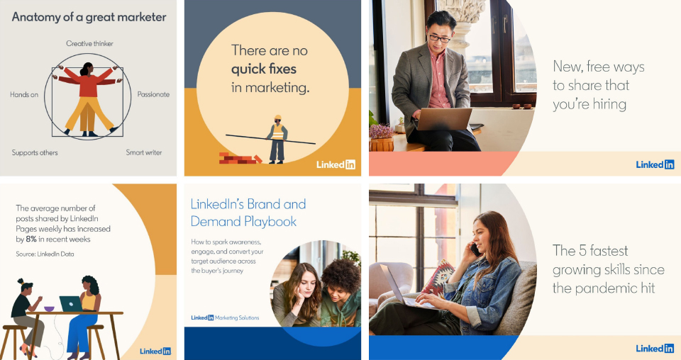 LinkedIn is a great example to illustrate this concept. Their brand uses subtle pastel and muted colour tones in their online messaging and creates a platform people feel at ease with. They have adapted particularly well to the pandemic with their social media advertising. Here are a few examples:
