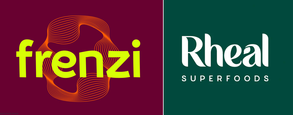 Frenzi is a drawn typeface with carefully considered angles and curves, balanced to express motion & movement and give the brand a unique twist. Whilst the characters form a very organic look on the Rheal logo – perfect for this brand! And the ‘a’ character is carefully adapted to incorporate a leaf symbol.